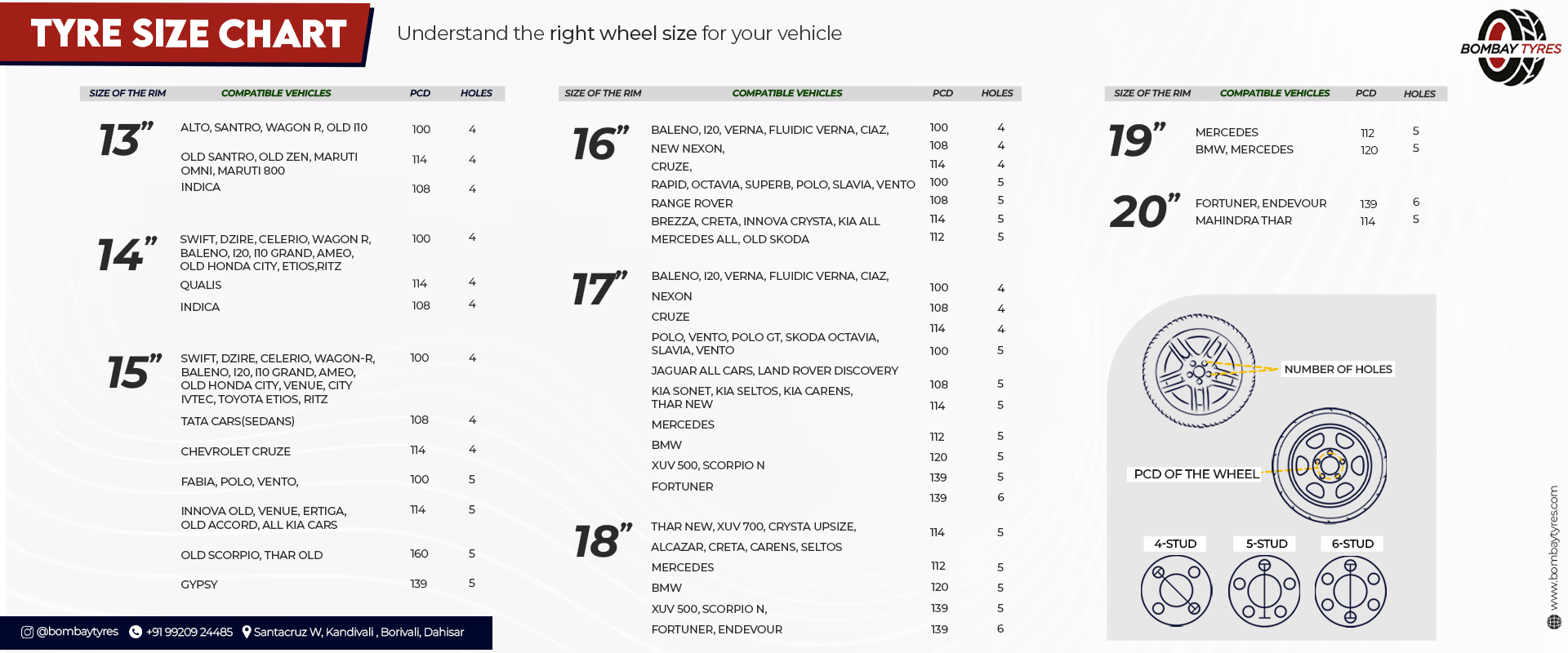 Before making a purchase, refer to our size chart above to ensure compatibility with your vehicle. For any queries, feel free to reach out to our dedicated customer care executive at +91 99209 24485. Drive with confidence, drive with Bombay Tyres.